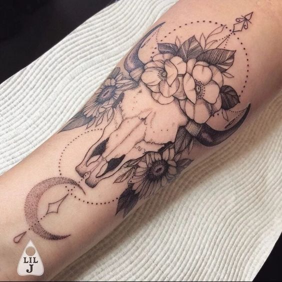 If you’re into social media, you’ll notice that scrolling through various animal skull tattoos is popular. Cow skull tattoos will leave you speechless.